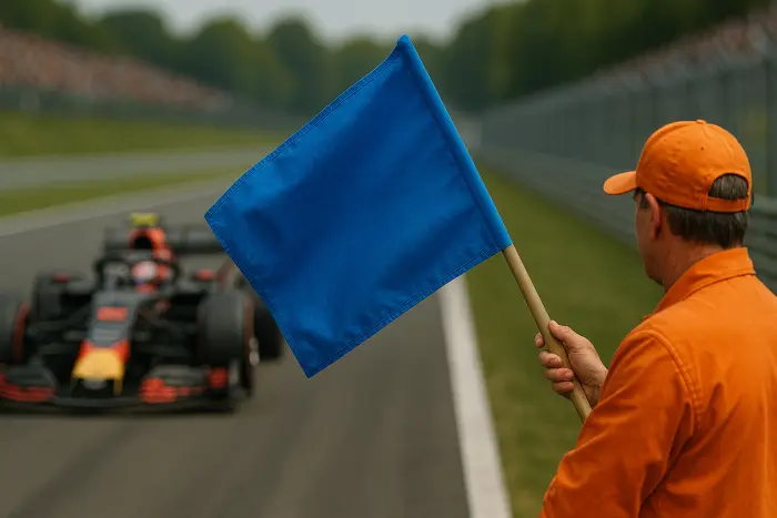 Синий флаг — это сигнал, который чаще всего видят пилоты, отстающие от лидеров на круг или более. Это не предупреждение об опасности, а приказ. Он требует от более медленного гонщика пропустить приближающийся сзади болид, который опережает его на круг. Игнорирование синих флагов мешает лидерам вести борьбу и может привести к серьезному штрафу для кругового. Это один из самых сложных флагов с психологической точки зрения: пилот ведет свою гонку, борется за позицию, но вынужден жертвовать своим темпом и траекторией ради чужой борьбы.
