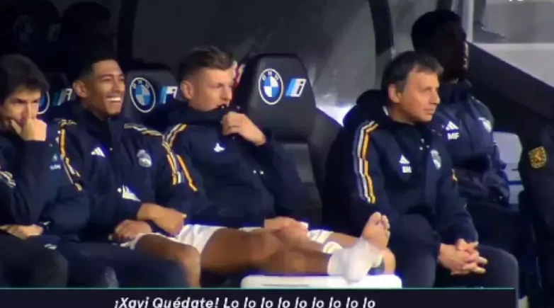 Среди них были Тони Кроос и Джуд Беллингем, которые, когда толпа вспоминала Хави, смеялись, сидя на скамейке и разговаривая друг с другом, как показывали камеры Movistar. Никто не знает, относилась ли их улыбка к скандированию, так как они также следили за игрой. Совпадение?