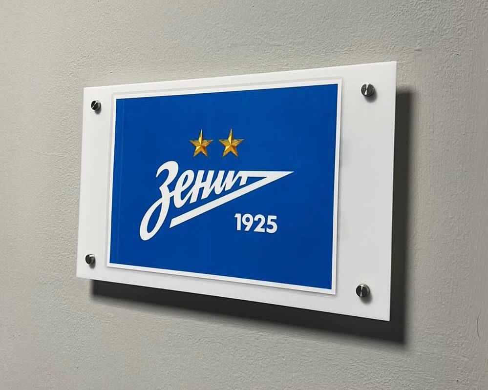 Через несколько часов пресс-служба «Зенита» опубликовала фотографию обновленной таблички и подписала ее как «Апдейт». Теперь на ней изображена текущая эмблема клуба с двумя золотыми звездами.